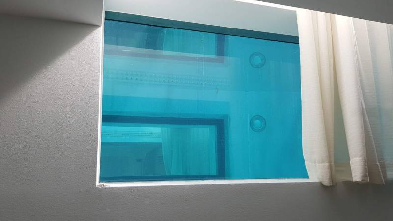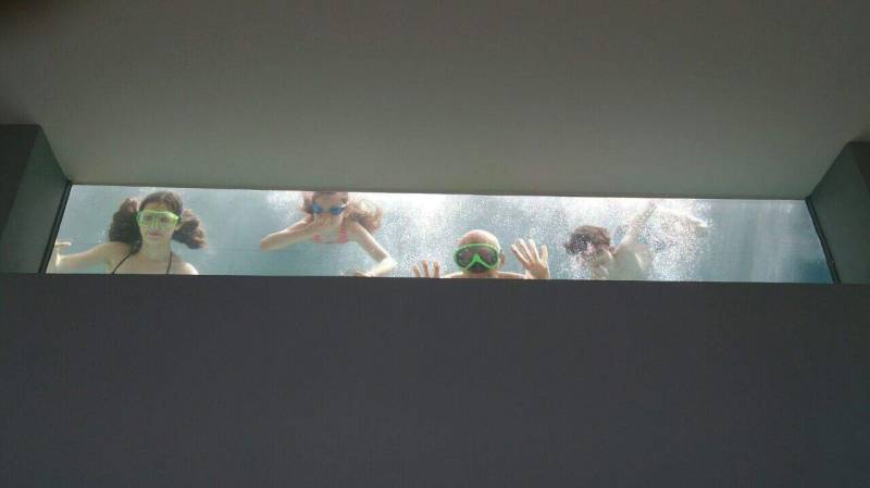Et si votre plafond était aussi le fond de votre piscine ? Pour les bassins installés à l'étage au-dessus, rien de plus simple. Chez Kôbo nous concevons et installons aussi des fonds transparents aquatiques en pmma. Véritable puits de lumière et source d'animation lorsque les baigneurs s'en donnent à cœur joie et nagent ou plongent à quelques mètres de vous. La nuit est une merveille, lorsque votre paroi ou votre plafond aquatique devient une source d'éclairage sans égal. Une véritable géode où les éléments composent une symphonie unique.
