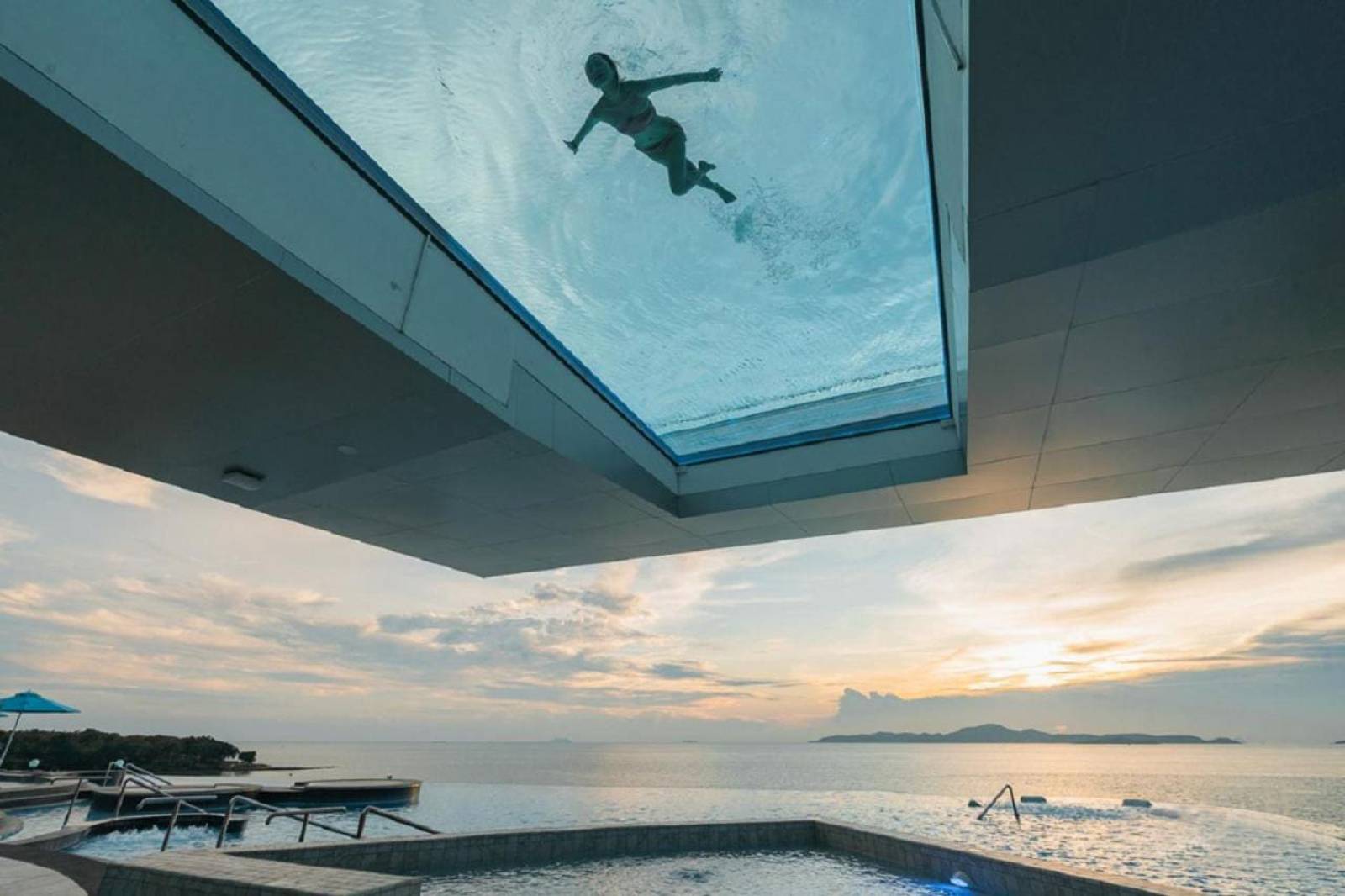 Ouvrez le fond de votre piscine et révélez bien d'avantage que sa propre profondeur ! Et si le monde d'en bas s'offre à elle, pensez aussi au monde d'en haut. Confortablement installé dans votre jardin ou en plein milieu de votre salon, admirez votre plafond vitré. Levez les yeux sur l'étrange paysage aquatique où lumières et baigneurs participent à la féérie des eaux.